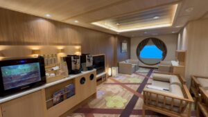 そして、スイートルーム最大の特権は、スイートカフェラウンジを無料で利用できること。QRコードをかざすと、スイートルーム宿泊者だけが入室を許される。