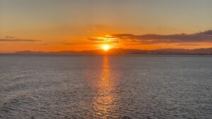 別府港が近づいてくると、ちょうど朝日が昇る時間。