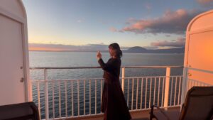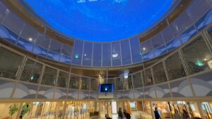 船内では、音楽のイベントやプロジェクションマッピングが開催される。就寝時間まで乗船客を飽きさせない。就寝時間を超えても眠るのが勿体ないようで、プロムナードでのんびりと過ごす姿が多かった。