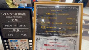 船内の最大の楽しみといえば、レストランのビュッフェだと思う。ところが、当日は全ての部屋が満室。結論を先に書くと、レストランで夕食を摂ることができなかった。