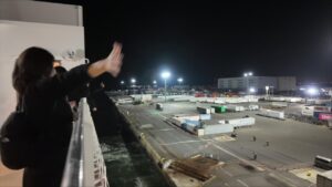 展望デッキ。港から整備員の方々が大きく手を振ってくれるのが嬉しい。