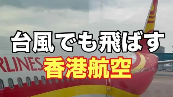 台風でも飛ばす香港航空の機内食。JALやキャセイパシフィックは全便欠航していました。
